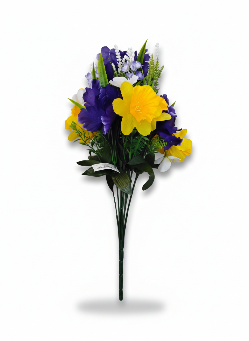 Seidenblumenstrauß gemischt mit Narzissen und Iris