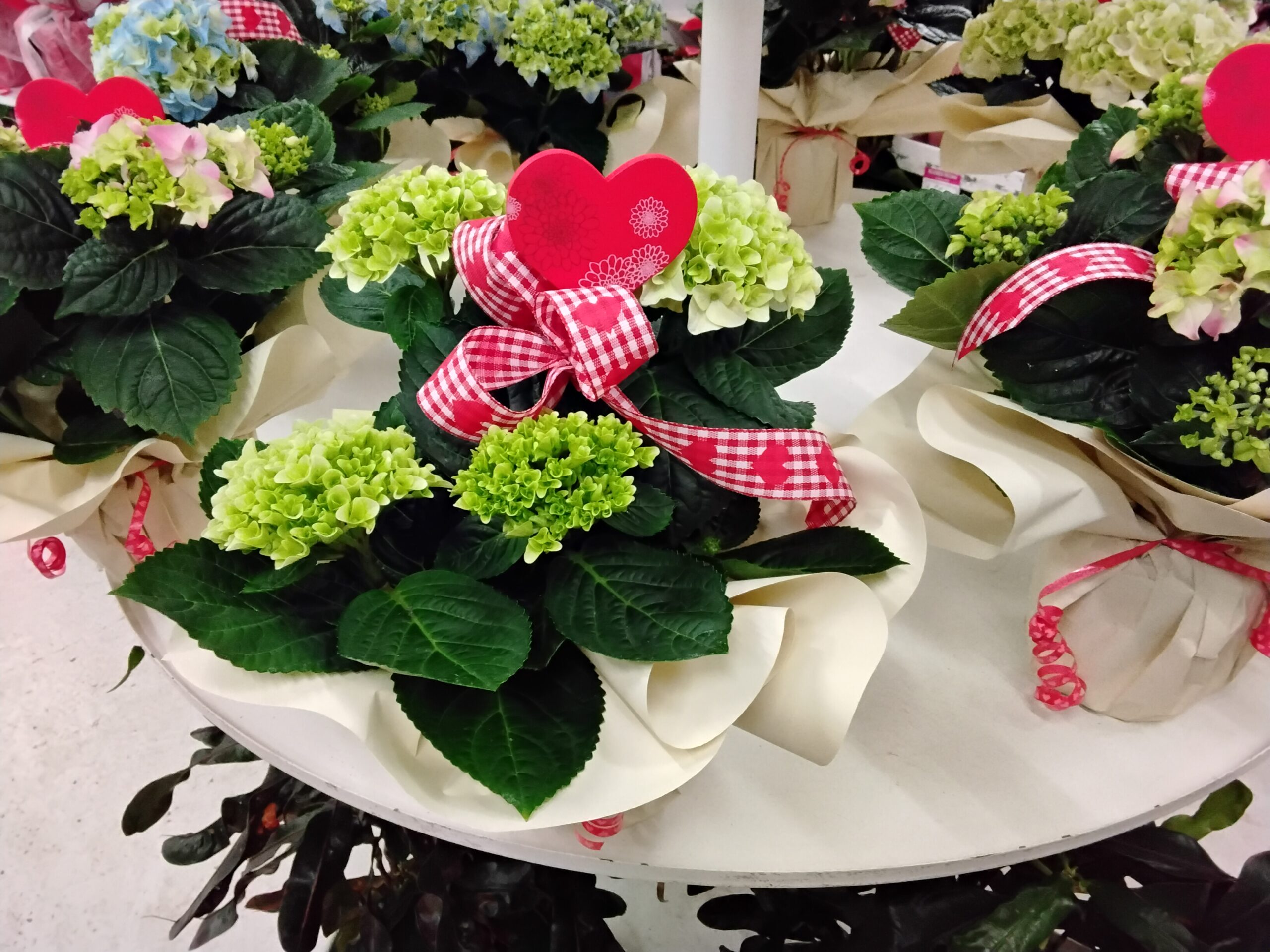 Hortensie im topf in weiẞ mit manchette und herz farben können je nach Verfügbarkeit abweichen