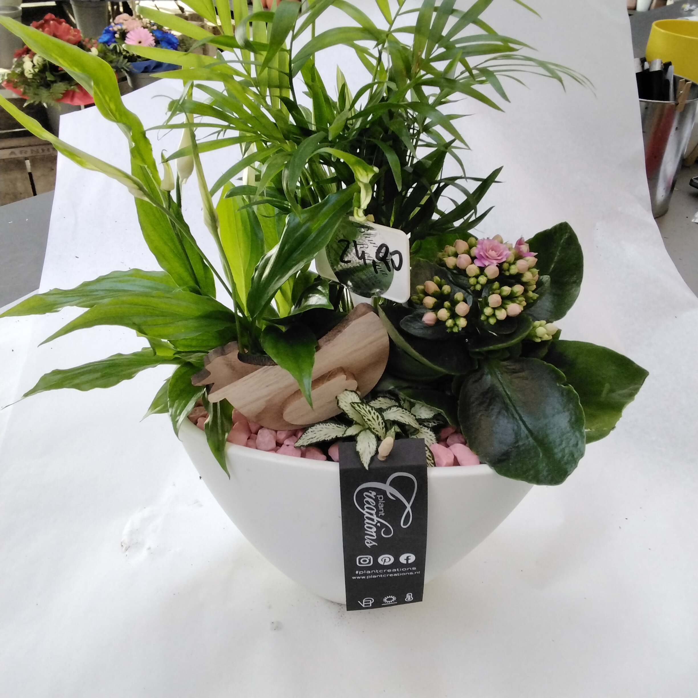 Diese liebevoll bepflanzte Keramikschale ist ein echter Hingucker für jeden Wohnraum oder das Büro. In der hochwertigen Schale entfalten verschiedene bunte Pflanzen ihre ganze Pracht und setzen farbenfrohe Akzente. Dabei harmonieren die unterschiedlichen Grün- und Blütennuancen wunderbar miteinander und schaffen ein frisches, natürliches Ambiente. Die robuste Keramik punktet nicht nur durch ihre Stabilität, sondern unterstreicht zugleich die Schönheit und Wertigkeit des floralen Arrangements.