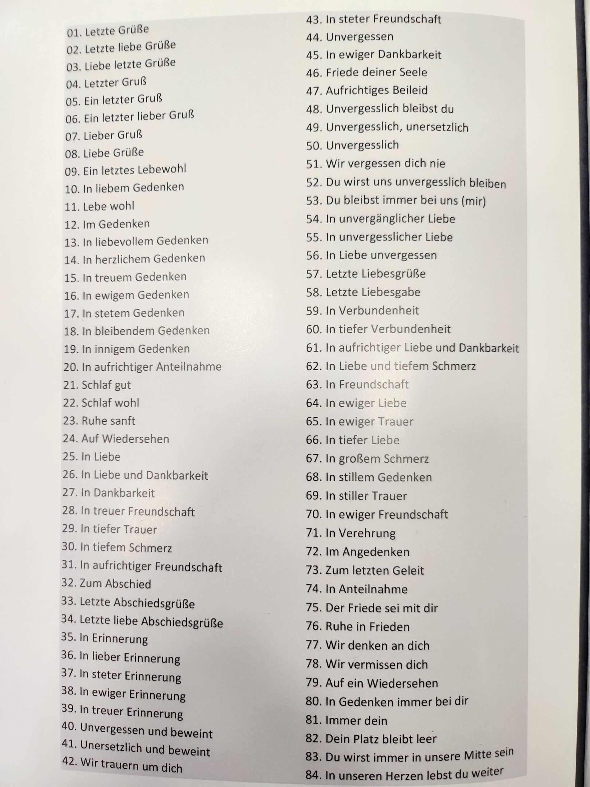 Hier finden Sie Diverse Texte für Trauerschleifen